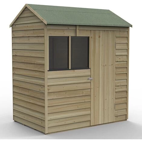 4Life™ Pressure Treated Sheds are the best range of overlap sheds Forest has ever made. Available in a variety of styles and sizes, they are all expertly designed and built in the UK. This one is the 6×4 Reverse Apex Shed (1.88m x 1.34m), so is perfect for general outdoor storage in a smaller garden.