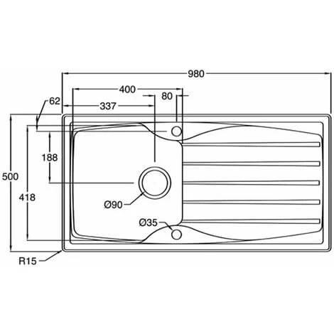 Sink dimensions (mm): W980 x D500