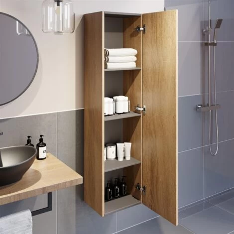 Real wood look and feelThe vanity units feature a wood finish that s at the very forefront of material technology, offering a truly luxurious embossed texture and a real sense of quality. Underneath the waterproof melamine veneer is hugely durable particleboard which makes it ideal for wall hanging thanks to its low weight. |