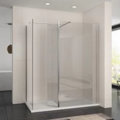 ELEGANT 1200 X 800 Mm Walk In Wetroom Shower Enclosure Panel With Stone Tray And 300mm Flipper Panel