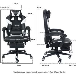 ELFORDSON Gaming Chair With RGB LED Light 8-Point Massage, Black