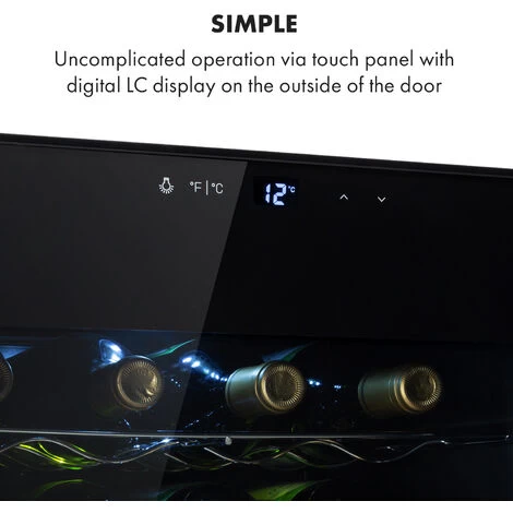 Lots of space: 70 litres capacity for up to 28 bottles of wine in one cooling zone