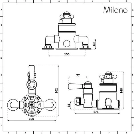 – Controls temperature and flow of water to a rigid riser shower kit