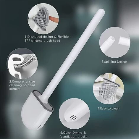 Clean every dead spot: The soft, flat toilet brush gets into nooks and crannies and cleans hard-to-reach places. The silicone toilet brush is light in weight and will not get tired after prolonged use. The perforated sides are breathable and keep the toilet brush dry.