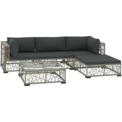 Hommoo 5 Piece Garden Lounge Set With Cushions Poly Rattan Grey VD34022