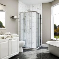 ELEGANT 800 X 800 Mm Walk In Quadrant Shower Cabin Sliding Shower Cubicle 6mm Glass Shower Enclosure