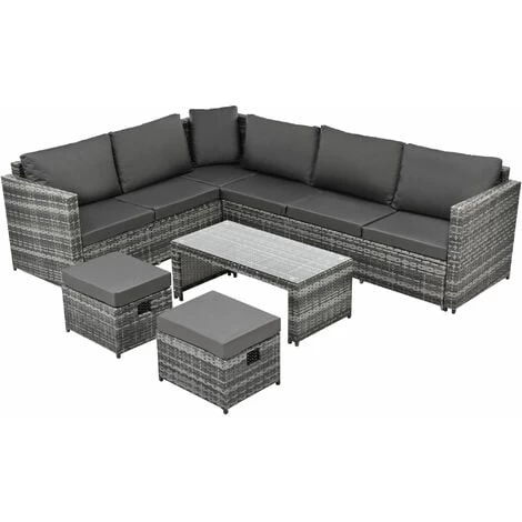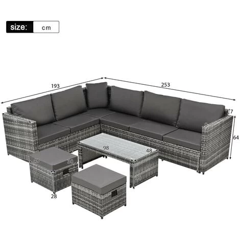 This 8-Seater Rattan Garden Furniture Set includes 1 Corner Sofa, 2 Stools, and 1 Coffee Table, it is perfect for any occasion – a family dinner party or a friend’s party, you can enjoy the great weather and have a great time with your whole family or your valued friends and guests. Just have fun together!
