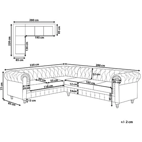 Key Features: Wide, Comfortable Sitting Surface, Perfectly Fitted Armrests, Thickly Padded for Utmost Comfort, Elegant Chesterfield Look, Stable and Durable Construction, Removable Covers, Thoroughly Upholstered, Leg Caps for Surface Protection