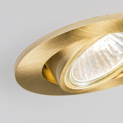 The QAZQA Set of 10 Recessed Spotlight Gold – Cisco is Gold/Messing. Suitable living spaces for this lamp are: Indoor lights, Dining room, Hall way, Kitchen, Bedroom, Living room. Finish off the look of your interior with this Set of 10 Recessed Spotlight Gold – Cisco!
