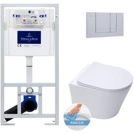 - Villeroy & Boch Viconnect Pro Pack Support frame for wall-hung toilets + Matt chrome two-touch trigger plate (92214469)